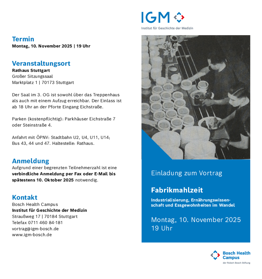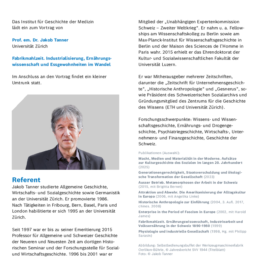 Prof. em. Dr. Jakob Tanner: „Fabrikmahlzeit. Industrialisierung, Ernährungswissenschaft und Essgewohnheiten im Wandel“