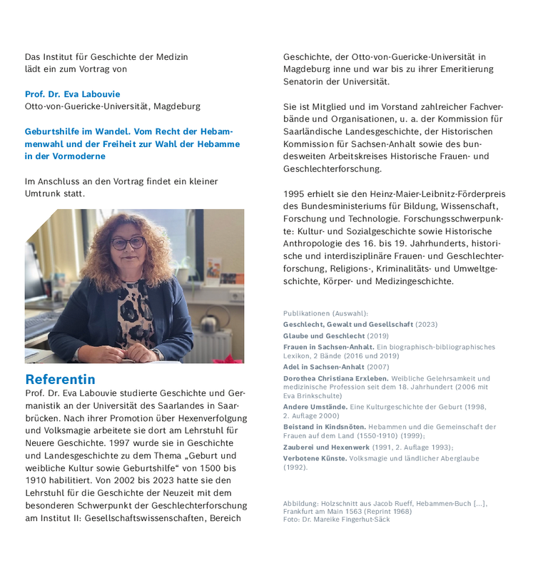 Prof. Dr. Eva Labouvie "Geburtshilfe im Wandel. Vom Recht der Hebammenwahl und der Freiheit zur Wahl der Hebamme in der Vormoderne"