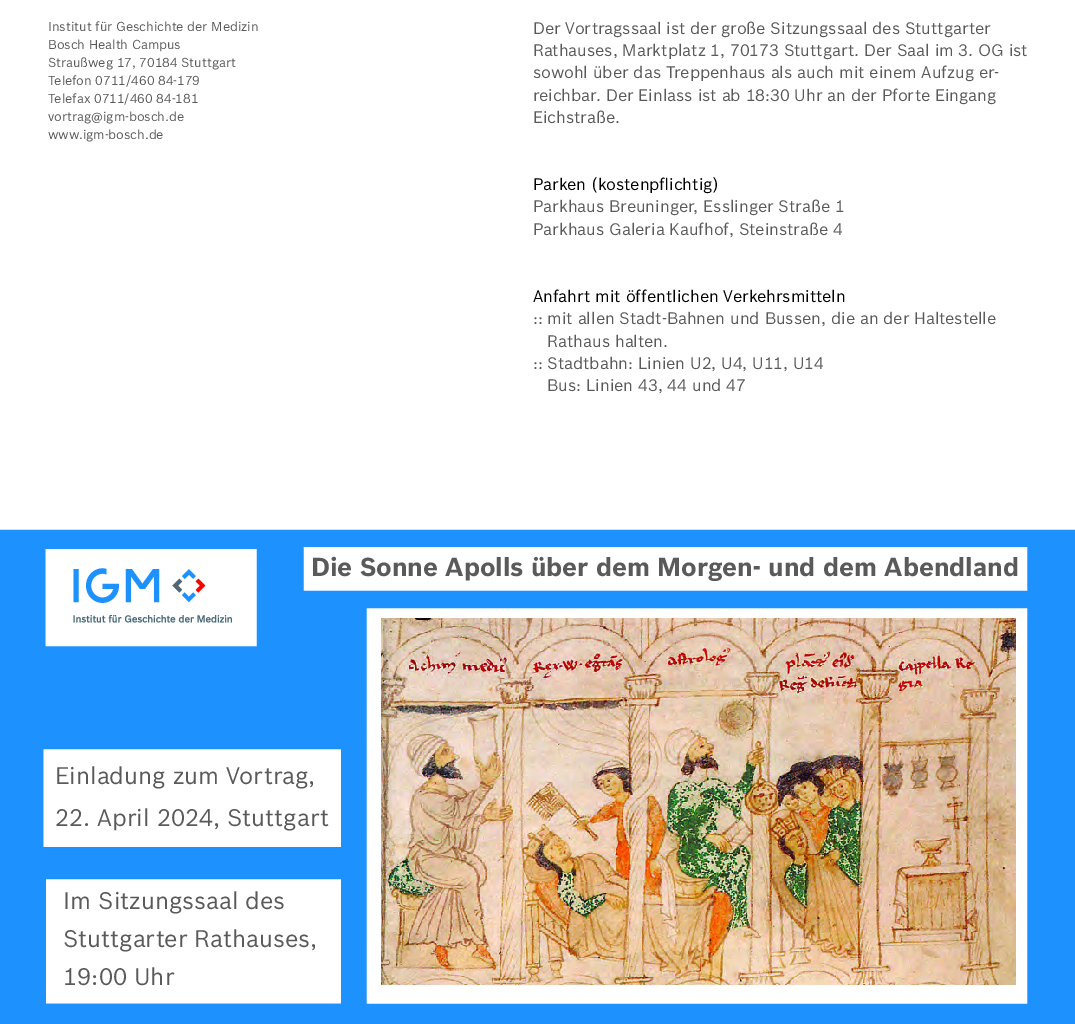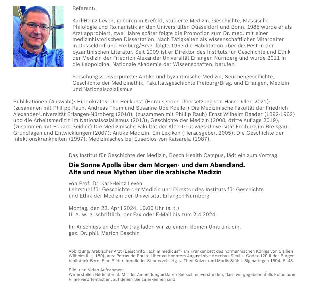 Prof. Dr. Karl-Heinz Leven "Die Sonne Apolls über dem Morgen- und dem Abendland. Alte und neue Mythen über die arabische Medizin"
